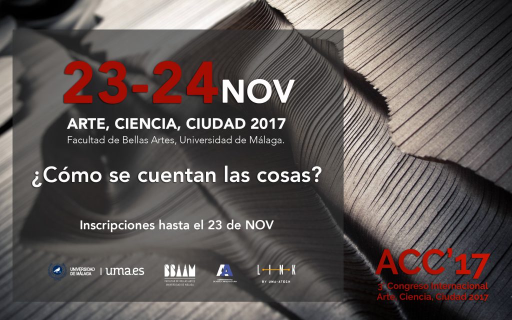 El 23 y 24 de noviembre en la Facultad Bellas Artes de Málaga se celebrará el ACC´17  (Artsciencecity), el 3º Congreso internacional de arte, ciencia y ciudad.
