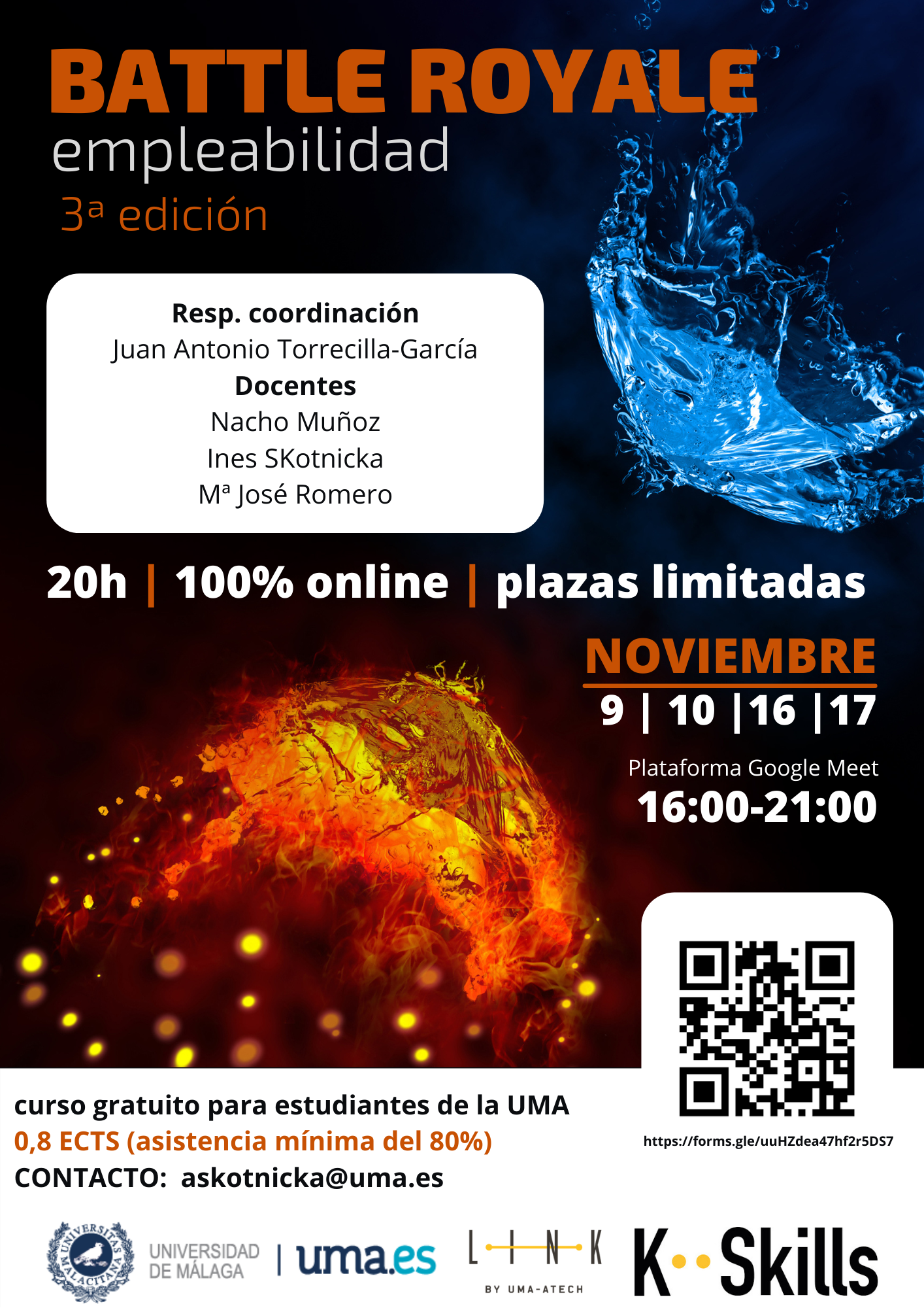 ONLINE ¡Comienza la GUERRA y El Cómo actuar depende de ti! Una vez más, llega a Link by UMA la III Edición de "Battle Royale: empleabilidad y emprendimiento de supervivencia". Se trata […]