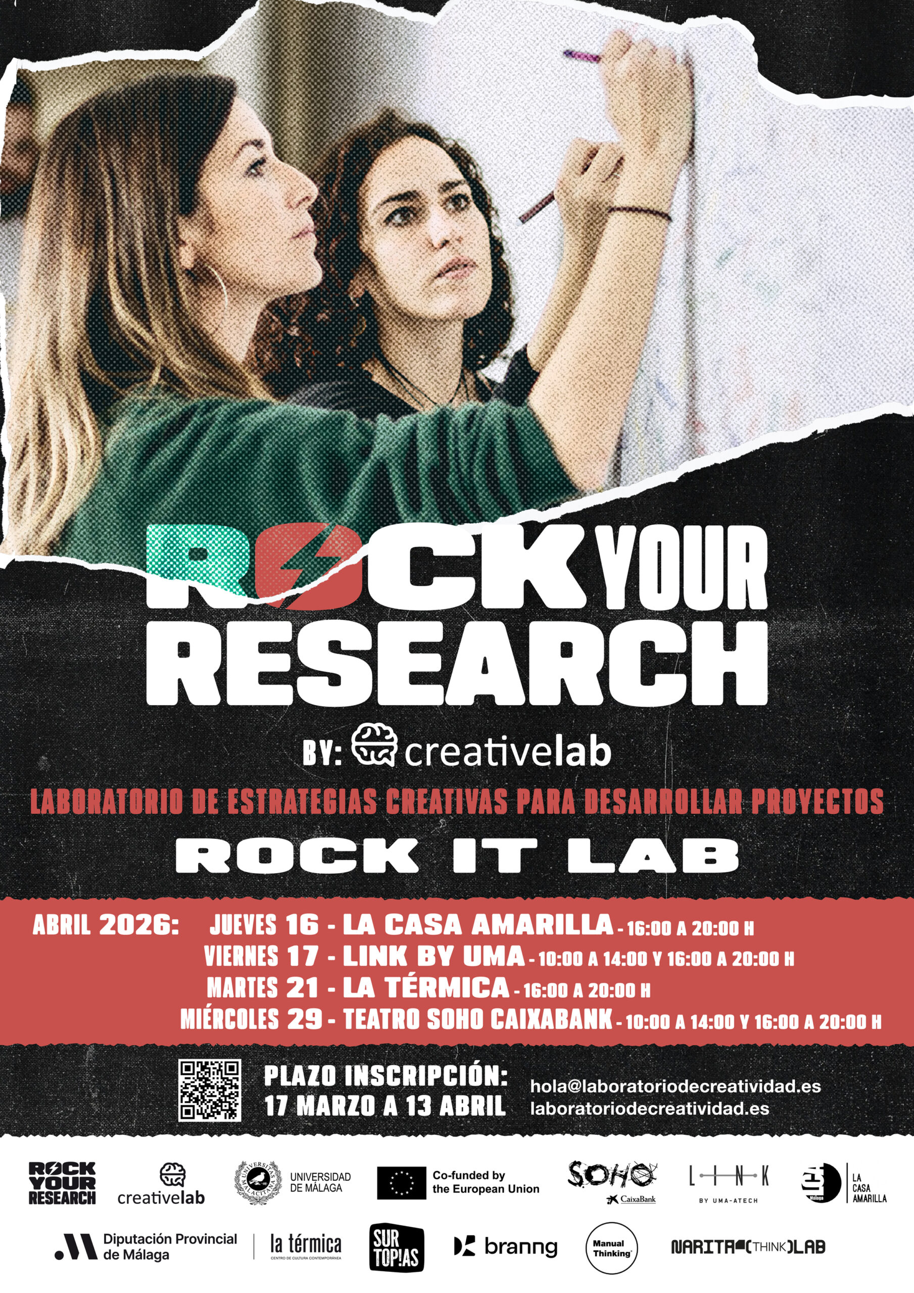 Salas 3.01 y 3.02, 3ª planta de Link by UMA, de 10 a 20h Rock your Research by Creativelab Formación presencial para desarrollar habilidades creativas. Descubrirás cómo entrenar la creatividad, […] |